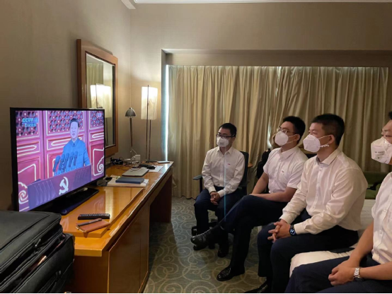 集團(tuán)黨組領(lǐng)導(dǎo)在總部收看直播